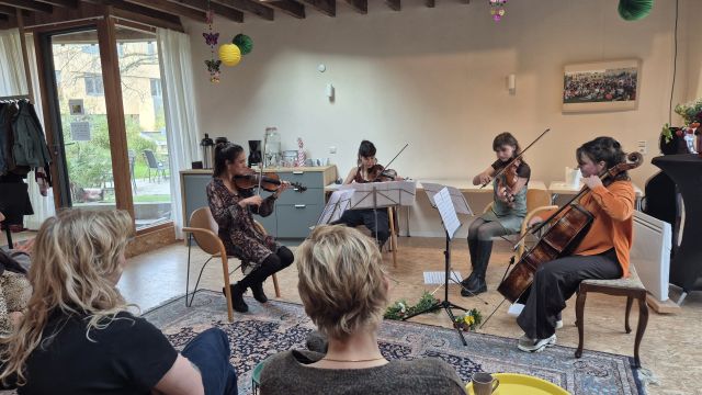 Het gemeenschappelijke tuinhuis van Groene Mient wordt actief gebruikt voor vergaderingen, workshops, feestjes…. Ook zijn er muziekoptredens zoals tijdens het Vruchtenbuurtmuziekfestival , Gluren bij de Buren en van Groene Mient’ buren zelf. Optreden Phynea Ensemble Optreden Roddelkop Delen via social media Tweet Delen Plus één Pin Het Delen Overige nieuwsitems Radio Den Haag FM podcast over Groene Mient31 mei, 2024 Radio Den Haag FM podcast over Groene Mient In de negende aflevering van de nieuwe serie, genaamd 'Straatwijs 2050' over hoe Den Haag… Kennismaken gasloos koken voor de buurt2 februari, 2020 Kennismaken gasloos koken voor de buurt Op 1 februari vond de eerste “samen koken, samen eten” bijeenkomst plaats, waarbij bewoners van… Spannende decembermaand4 januari, 2016 Spannende decembermaand In december beleefden de Groene Mient leden een spannende tijd met het op tijd rond…